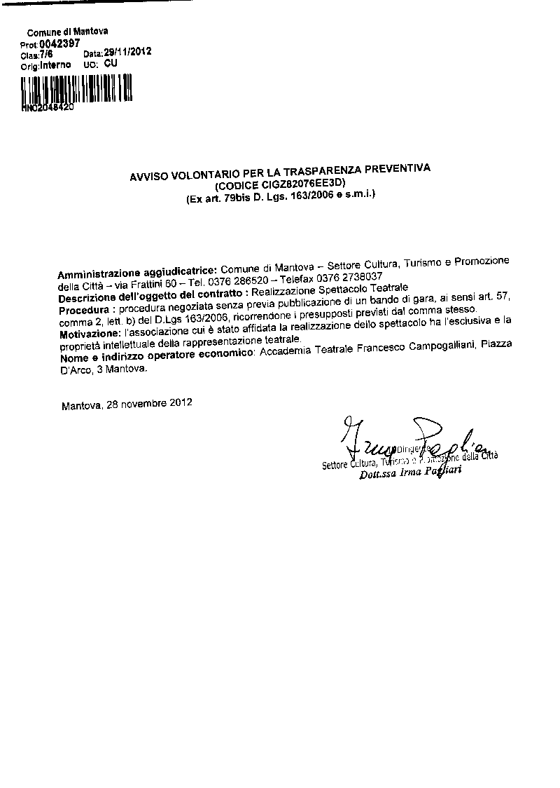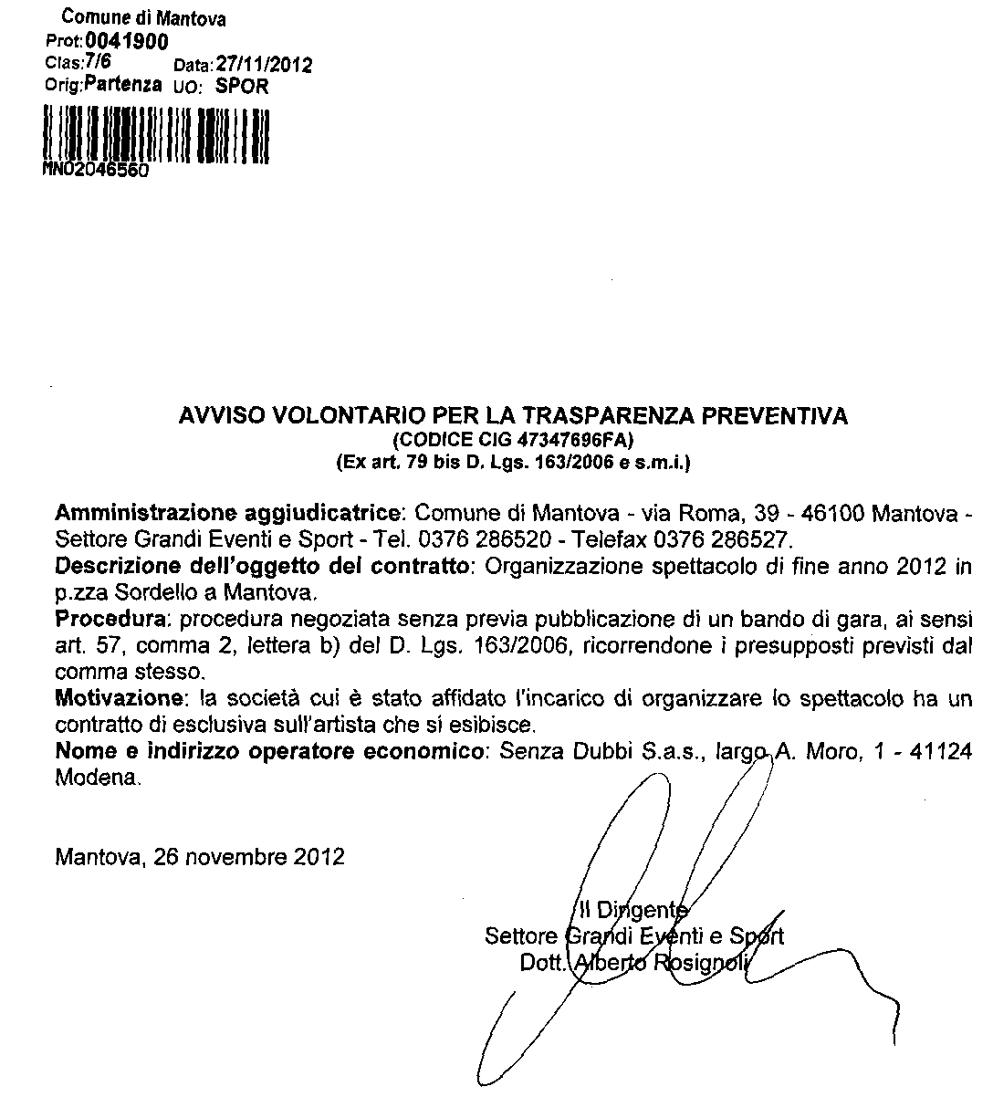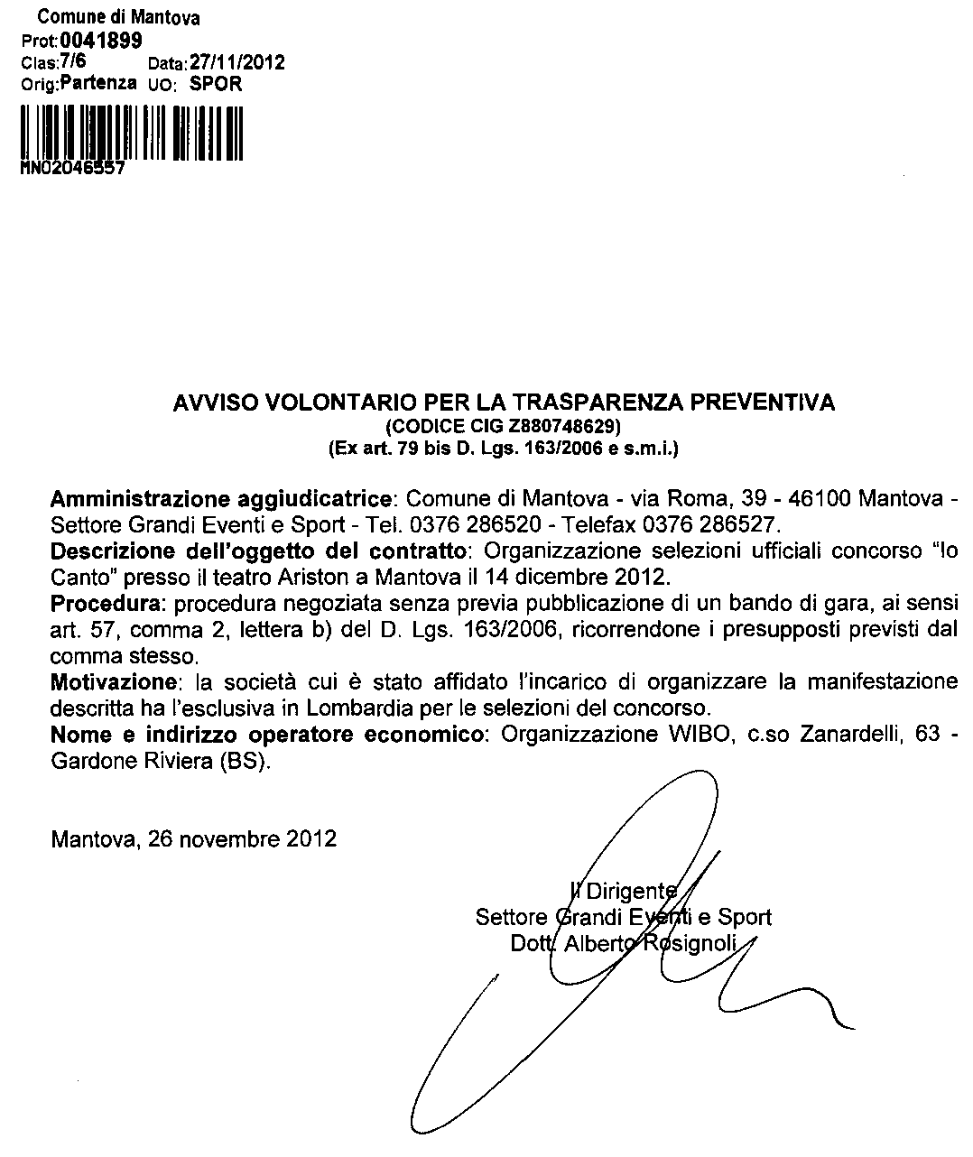 Impegno di spesa per i servizi tecnici e di palcoscenico necessari all'organizzazione di un concerto di Natale il 19 dicembre 2013, presso Teatro Ariston, nell'ambito della rassegna natalizia Mantova Mille Luci.