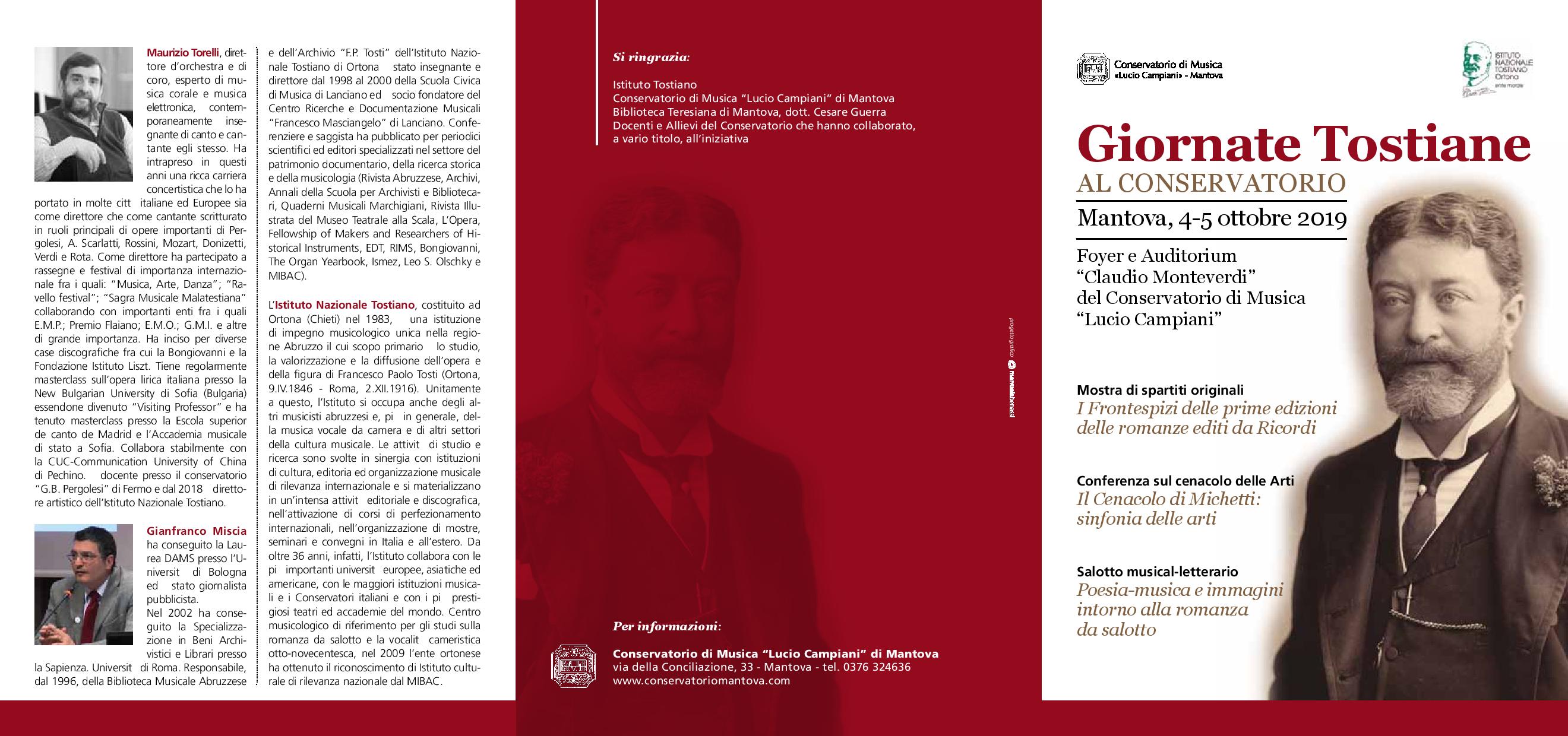 Nelle Giornate di venerdì 4 ottobre e sabato 5 ottobre si svolgeranno presso il Conservatorio L. Campiani di Mantova una serie di eventi dedicati al musicista ortonese Francesco Paolo Tosti (1846-1916), il più famoso e senz’altro il maggiore dei compositori italiani di romanze.